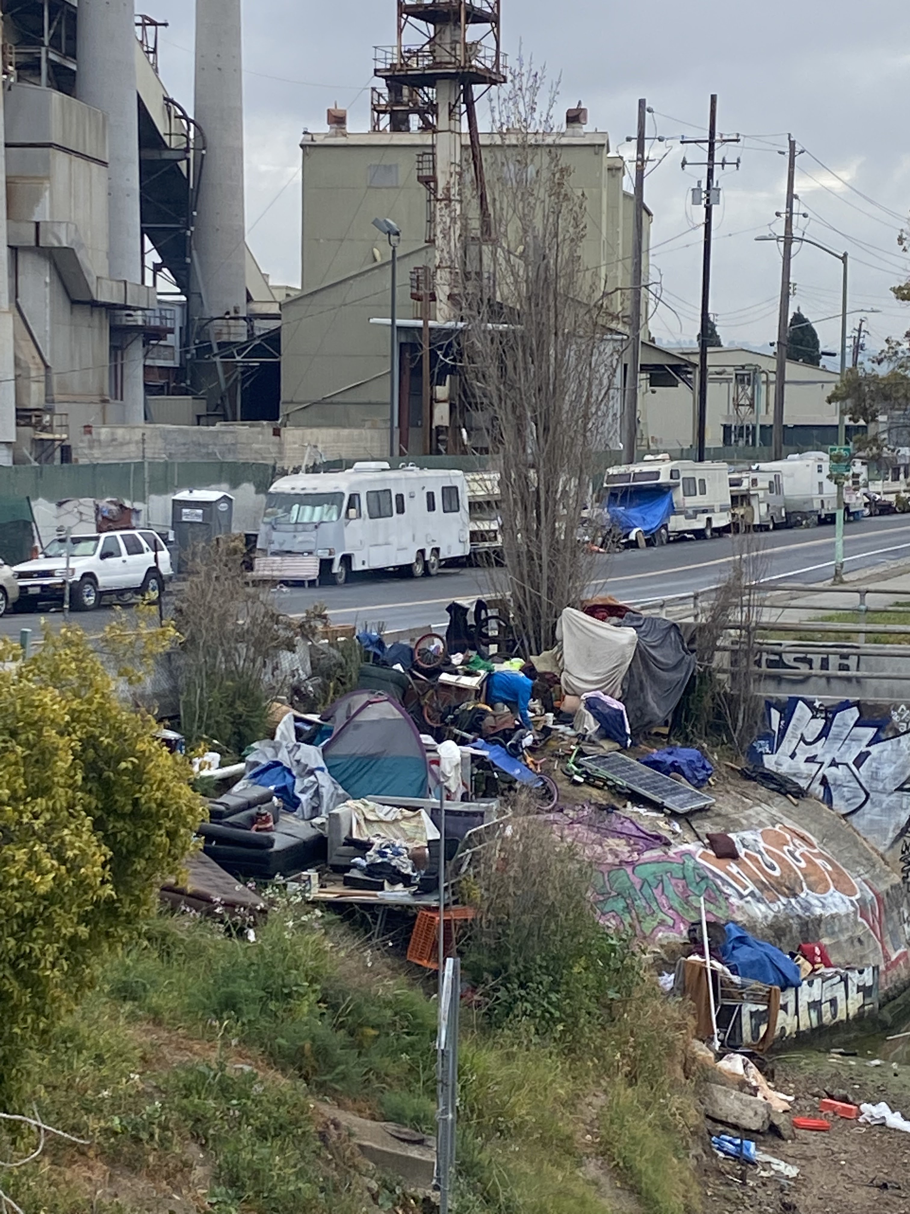 Fruitvale in East Oakland has some squalid encampments of people living on the streets.